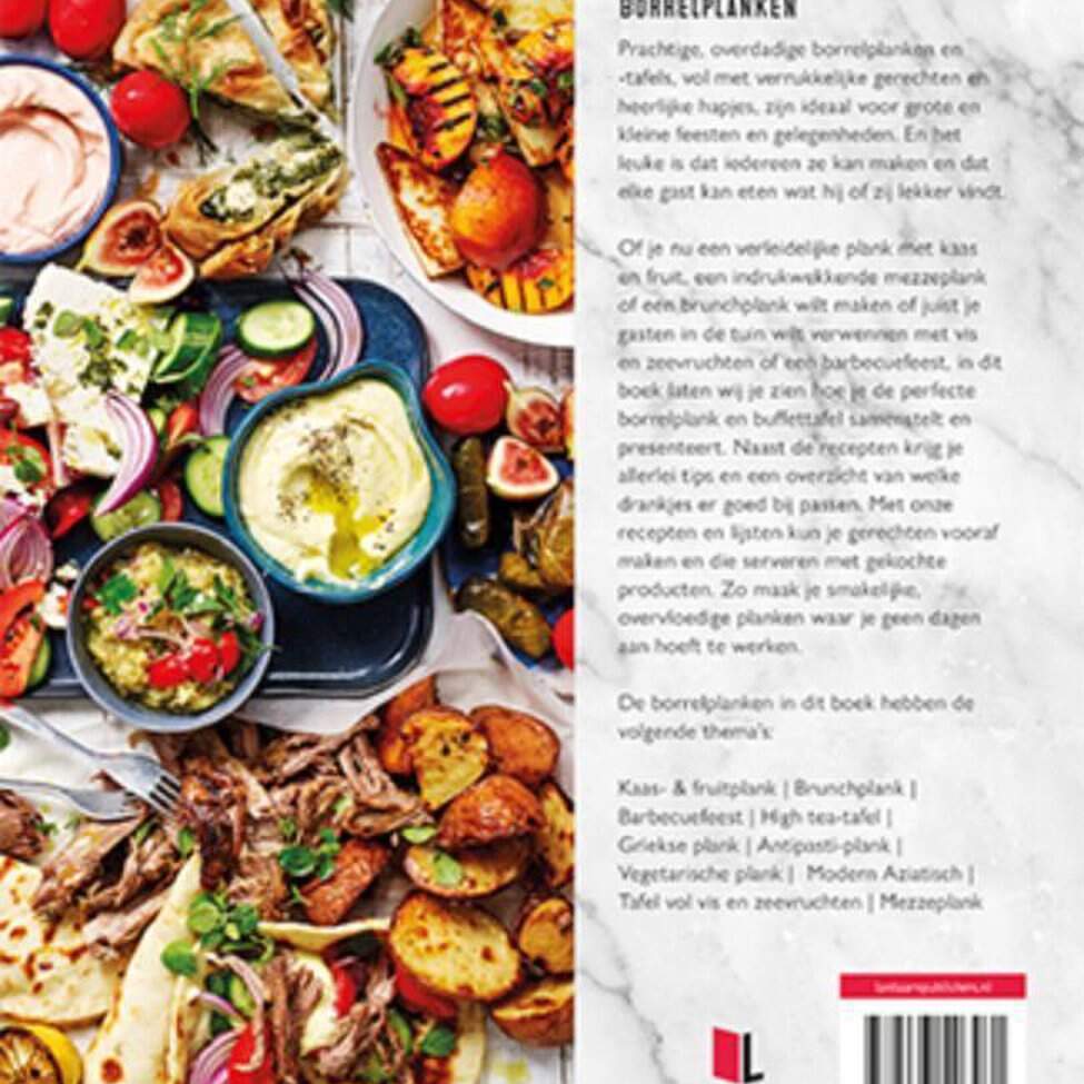 Heerlijke, overdadige borrelplanken -en tafels, vol met verrukkelijke gerechten en heerlijke hapjes, ideaal voor een grote en kleine gelegenheden. Of je nu een verleidelijke plank met kaas en fruit, een indrukwekkende mezzeplank of een brunchplank wilt maken of juist je gasten in de tuin wilt verwennen met vis en zeevruchten of een barbecuefeest, in dit boek laten wij je zien hoe je de perfecte borrelplank en buffettafel samenstelt en presenteert. Naast de recepten krijg je allerlei tips en een overzicht van welke drankjes er goed bij passen. Met onze recepten en lijsten kun je gerechten vooraf maken en die serveren met gekochte producten. Zo maak je smakelijke, overvloedige planken waar je geen dagen aan hoeft te werken. Met mooie stevige kaft met zilverfolie. Super leuk om kado te geven! De borrelplanken in dit boek hebben de volgende thema’s: Kaas- & fruitplank /Brunchplank/Barbecuefeest/High tea-tafel/Griekse plank/Antipasti-plank/Vegetarische plank/Modern Aziatisch/Tafel vol vis en zeevruchten/Mezzeplank